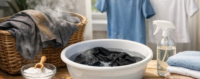 Jedlá sóda – je vynikajúcim absorbentom. Vložte oblečenie do vzduchotesného vrecka a nasypte doň šálku jedlej sódy. Dôkladne pretrepte a nechajte pôsobiť cez noc. Ráno stačí prášok vytriasť a oblečenie vyprať.